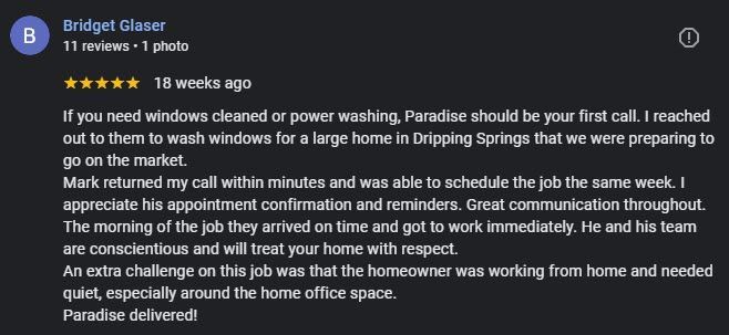 By submitting this form, you consent to receive SMS notifications and alerts from Paradise Pro Wash. Message frequency varies. Message & Data rates may apply. Text HELP to (830) 822-2650 for assistance. You can reply STOP to unsubscribe at any time.